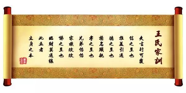 信、德、孝、悌、让的“五至” 遗训是琅琊王氏家族子弟为人处世的基本准则, 诚信做人, 诚实做事, 孝敬长辈,兄弟之间互相爱护, 不过分看重钱财, 这样才能保持家族和睦兴盛。史书记载, 琅琊王氏“子孙皆奉而行之”, 重教子, 尚孝悌, 以孝友传家。
