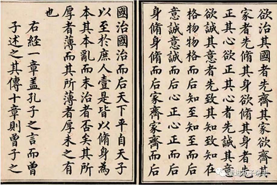 《大学》里有更全面的概括:格物、致知、诚意、正心、修身、齐家、治国、平天下。因此可以说,儒家教育是积极入世、内修外现的教育,同时还要博施济众,修己以安百姓。如《论语·宪问》:“子路问君子。子曰:‘修己以敬。’曰:‘如斯而已乎?’曰:‘修己以安人。’曰:‘如斯而已乎?’曰:‘修己以安百姓。修己以安百姓,尧舜其犹病诸?’”
