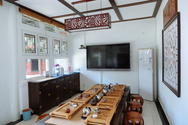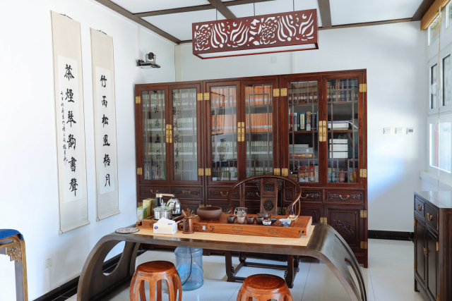 众所周知,“诚意”出自《大学》:“欲正其心者,先诚其意;欲诚其意者,先致其知,致知在格物。”之后,韩愈又进行了阐释,“古之所谓正心而诚意者,将以有为也”。故而,诚意堂的设置,就是希望老师们能多读书、多实践,通过演习茶道,学习茶史,能够平心静气,在学业和个人工作方面都能有所作为、有所成就。诚意堂同时也适合专家教授进行小班授课或小组讨论,采用私塾的教学模式,为老师们讲授学问正统。诚意堂的楹联为:“通天地大道至简,合知行至诚如神。”其意在引导众人,明了精神所至,可以推知事物的发展变化;学着让自己简单,做事情不要太复杂。此中深意,不仅适合茶道修习,而且适合学问修行,可导人知行合一、不断精进。诚意堂的正匾和楹联均由中国人民大学教授程方平先生拟定撰写。