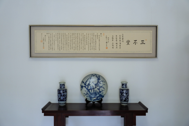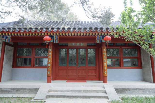 德音斋是名家小型论道之所。内设古琴、传统文化典籍。书院荣誉院长楼宇烈先生及传统文化学者常在此会谈,或举行小众会讲。在心寄当今文化教育之时,于琴曲中畅谈古今学术流变,思考传统文化的现代传承。抚琴论道,坦易而恳切;斟茶举要,言简而意赅。德音,最初指善言,出自《诗?邶风?谷风》:“德音莫违,及尔同死。”后亦用以对别人言辞的敬称。还用以指代帝王的诏书。至唐宋,诏敕之外,别有德音一体,用于施惠宽恤之事,犹言恩诏,也指朝廷所定的正统音乐。德音斋楹联:“文传道统贯今古,言继德音弥六合。”其中,道统指的是儒家传道的脉络和系统。孟子认为孔子的学说是承接尧、舜、禹、汤、周文王等先代圣王的,并且自命继承了孔子思想的正统。德音斋楹联由楼宇烈先生亲自撰写并题写。