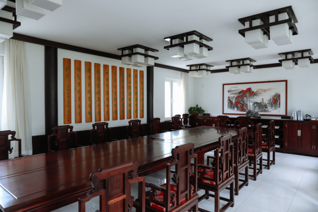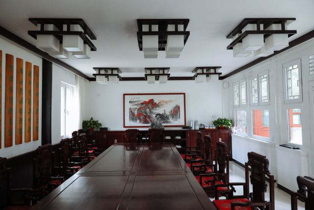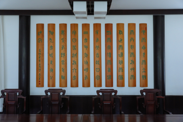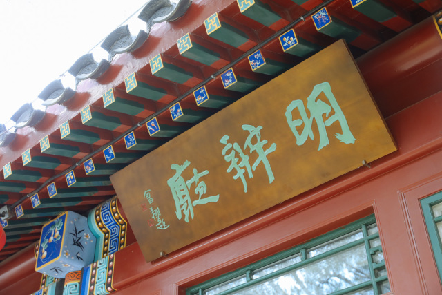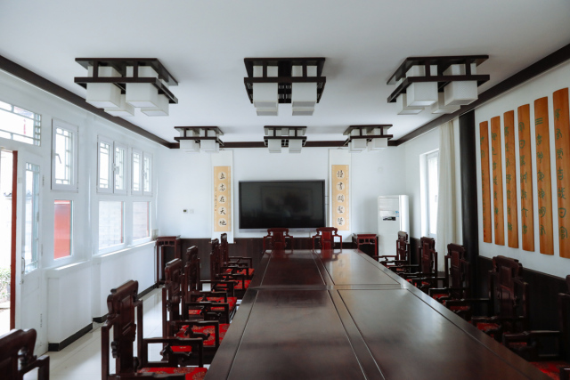 明辨厅匾额由中国艺术研究院书法家曾翔题写,取自《中庸》“博学之,审问之,慎思之,明辨之,笃行之”。“明辨”是为学的第四阶段,强调人们对所学知识要加以分辨,去粗取精,去伪存真;否则,所谓“博学”就会良莠不齐,真伪不分。明辨厅可容纳20人左右,主要进行工作研讨、学习交流、主题讨论的场所。在这里,可以集体观看书院多媒体展示,进行小型专家组会议与讨论,院务会议讨论,以及作为来宾交流或学员反馈意见的场所。明辨厅内墙部分还装饰了竹简风格《尚书·皋陶谟》“为政九德”以及著名画家焦秉义赠送的国画《层林尽染》。厅前一株野山桃犹见风骨,每至早春三月,枝芽烂漫,清新素雅,引蜂蝶点染,与“明辨厅”交相辉映,美得沁人心神。