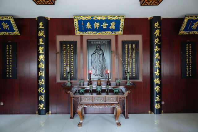子曰:“知者不惑,仁者不忧,勇者不惧。”先师独立的人格精神以及对生命困惑的深刻思考,前无古人,后无来者。曾子曰:“士不可以不弘毅,任重而道远。”进入书院的学员要先在此堂向先师行礼致敬,表达对先师孔子筚路蓝缕教育事业的崇敬与感恩,以及对大道的追求与体贴之情。驻足于此,面壁诸圣,静思体悟,责任与使命感油然而生!后人对至圣先师的诲言犹如在耳,身行永为世范!