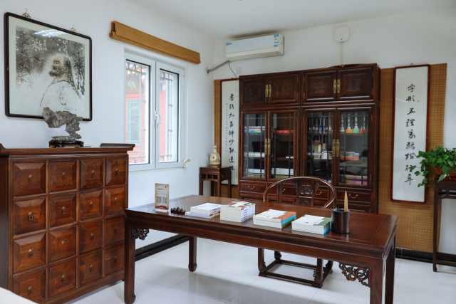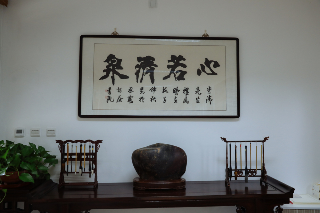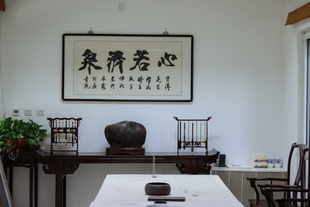 翰墨斋位于书院依仁苑内,紧邻中和堂,与德音斋相对。是书院师生研习书法,笔会雅集之所,具有浓郁的文人书斋气息。书斋匾额由著名书法家曾翔题写,室内收藏碑帖拓片、字画图书,陈设文房雅器,砚墨纸笔。适逢佳期,云淡风轻,群贤毕至,雅集于此,或泼墨洒金,酣畅淋漓;或参阅品评,悟道启慧。于运笔藏锋飞白流转中证悟中华至妙书道。