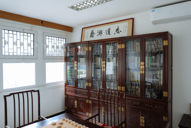 格物斋之名取自《大学》。格物,就是要求人们亲历其事,亲操其物,即物穷理,增长见识。在格物斋中设置有象棋,棋者可以在方寸之间排兵布阵,下棋、即是练心。心中布局,处事了然于胸。格物斋中收藏了部分传统文化教育著作,以及其他各门类教育学著作,包括国外教育家的经典教育著作。老师们在这里可以读书、养心。通过读书来学习、养成更好的思维方式,穷理明智,通过下棋来保持、锻炼思维的敏捷,陶冶身心。
