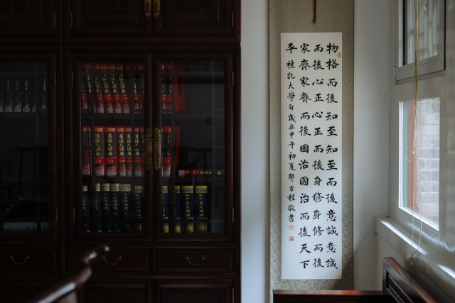 致知斋之名取自《大学》,致知就是求为真知,从推致事物之理中,探明本心之知。致知斋是专门的围棋修习场所。书院为下棋的老师提供了官帽椅,它独特的线条,有助于颈椎的保健。书院还为观棋的老师提供了太师椅,使观棋者能更好地领悟棋意。古人咏围棋说:“方若行义,圆若用智;动若骋材,静若得意。”动静之间,蕴含智慧,方圆之中,孕育哲理。孟郊曾为围棋写诗道:“仙界一日内,人间千载穷。双棋未遍局,万物皆为空。”为了契合这样的意境,致知斋中不仅有关于围棋的藏书,还有艺术、诗词等门类的藏书,让研修的老师能够更全面地欣赏中国古代的技艺。